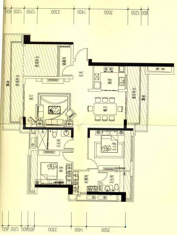 依云天匯B01戶型 3室面積155.00平米