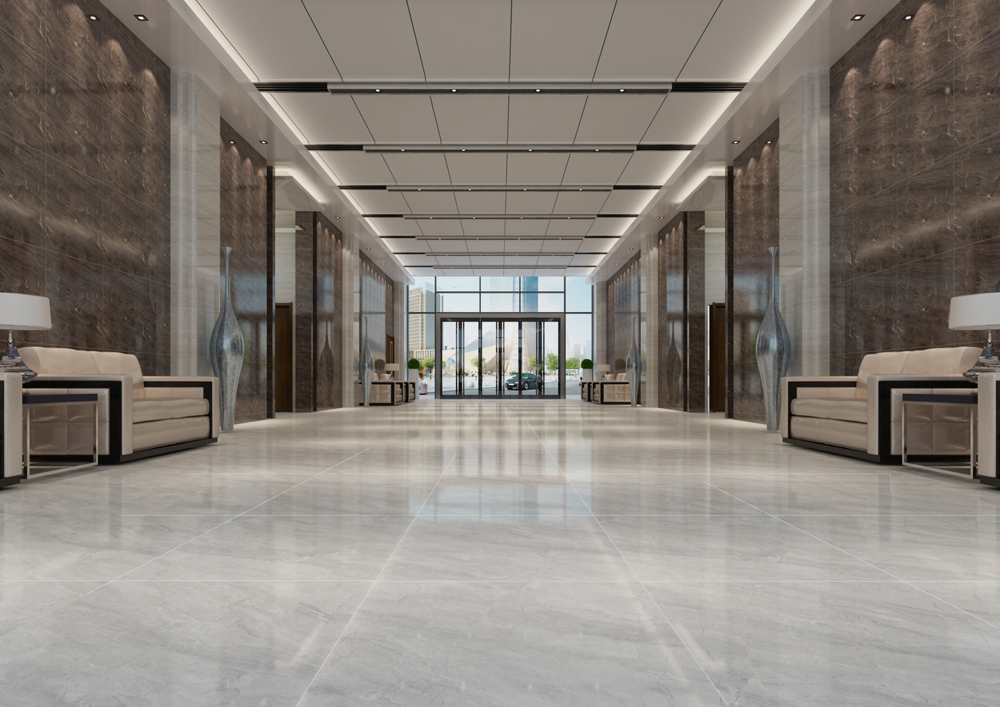 酒店休息區(qū)(KTA8301/KTB8110),同樣以通體大理石KTA8301/KTB8110鋪貼,一深一淺的搭配正好區(qū)分墻面和地面,但它們的紋理大致一樣,又很好地營造空間的和諧統(tǒng)一。沙發(fā)選用與地面接近的顏色,線條簡潔大氣,在休息區(qū)沒有流動(dòng)的線條,設(shè)計(jì)師用意是想營造休息區(qū)的安靜氛圍。