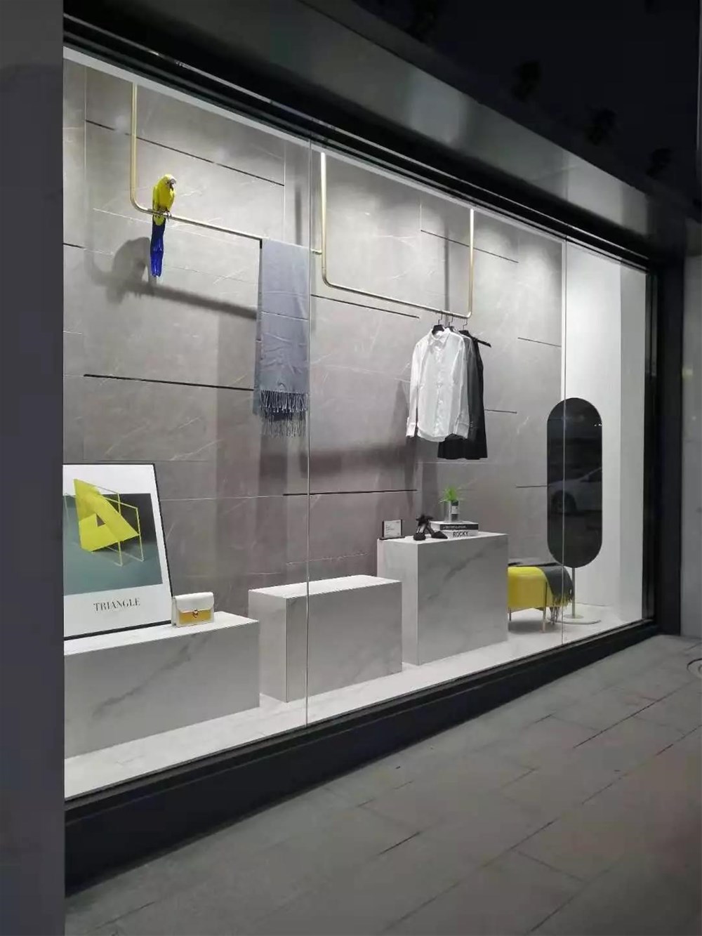 15°緞光釉的灰色調自帶迷人的高貴氛圍,結合白色的卡拉拉白,打造出高端商場的購物氣氛,就連貨架上的貨物都顯得那么的珍貴。